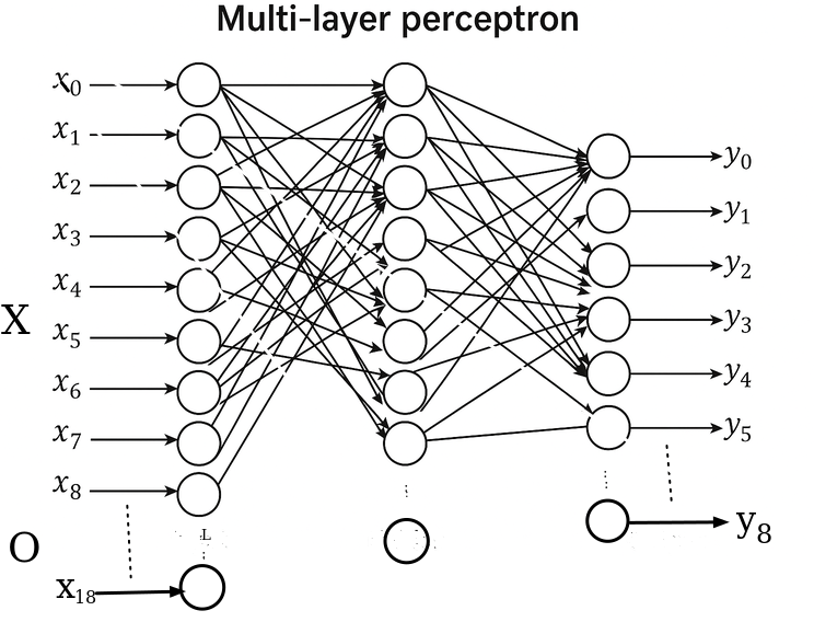 // mlp.h #ifndef __MLP_H__ #define __MLP_H__ #include <vector> #include <array> using namespace std; const int n1 = 19; //number of inputs and bias const int m1 = 27; //number of hidden nodes and bias const int K = 9; //number of outputs struct database { vector<array<double, n1>> inputs; vector<array<double, K>> labels; }; class MLP { private: double w1[n1][m1]; double w[n1][m1]; double wo[m1][K]; double a[m1]; //linear sum of products of inputs and weights double h[m1]; //hidden nodes h[j] = g(a[j]) double y[K]; //predicted output double z[K]; //linear sum of products of weights and hidden nodes double eta; //learning rate public: MLP(double learning_rate); double g(double x); double gd(double x); //Derivative of sigmoid function double* forward(double x[]); //Forward propagation void backward(double yd[], double x[]); //Backward prop, yd is desired output void train(const database &db, int epochs); //Train the Perceptron ~MLP(); int saveWeights(char fname[]); int readWeights(char fname[]); }; #endif