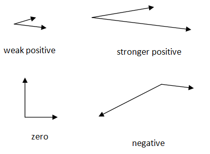 Consider two unit physical vectors. If they point in the same direction, dot-product = 1 If they are perpendicular to each other, dot-product = 0 If they point in opposite direction, dot-product = -1 dot-product ~ corelation or similarity between two vectors |